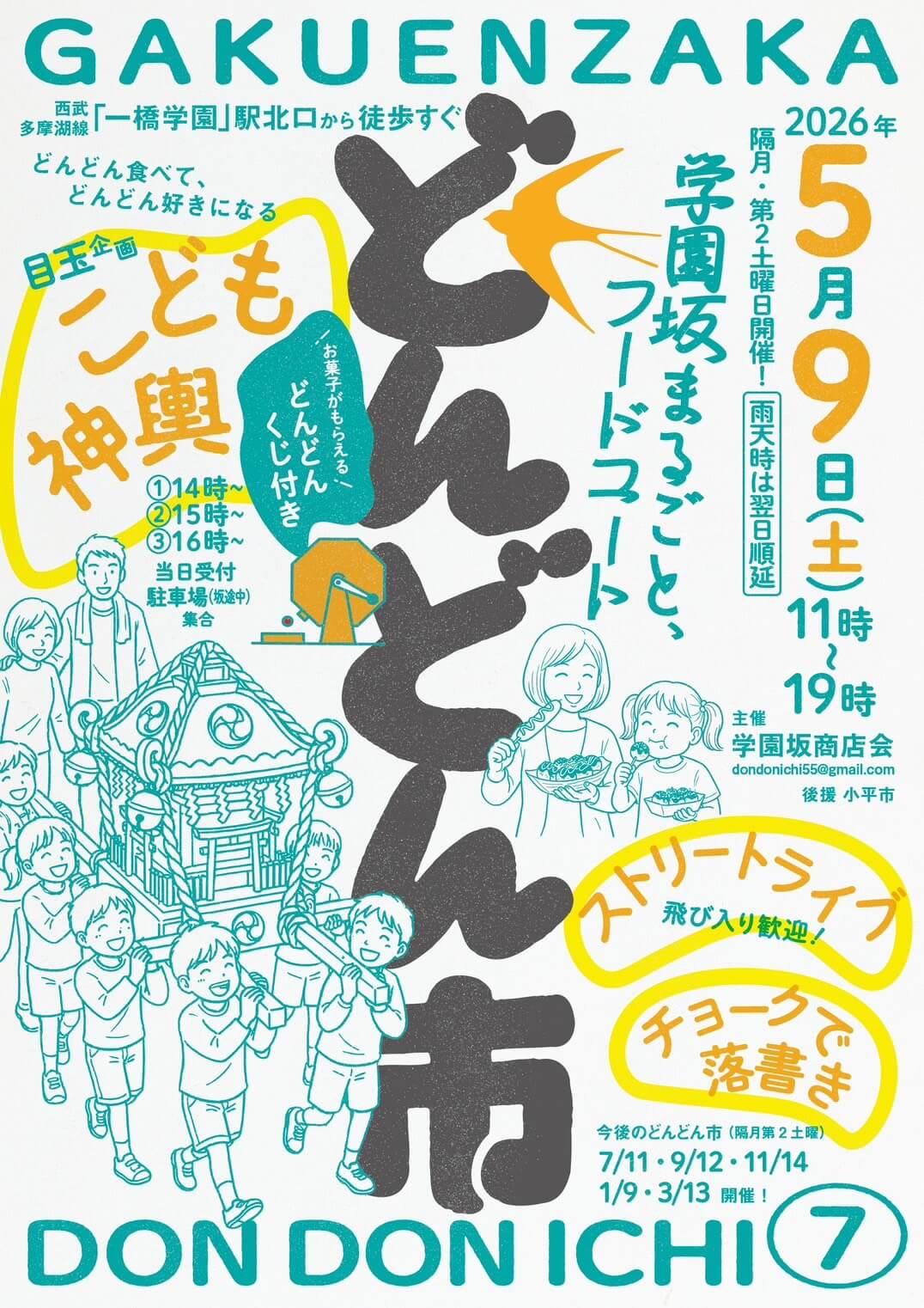 ・2026年5月9日(土) 一橋学園駅北口 学園坂商店街 「どんどん市」
